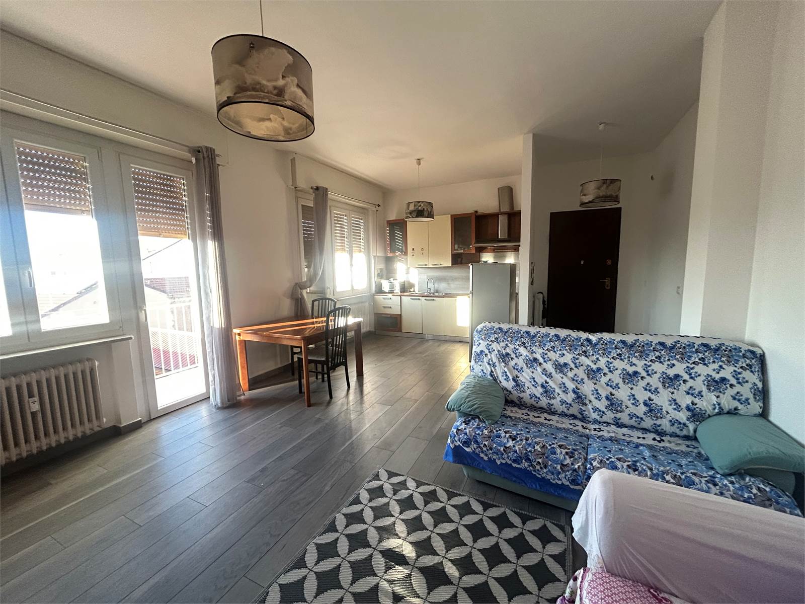 L’ingresso si apre su un luminoso soggiorno living con cucina a vista, impreziosito da un balcone che serve l’intera zona giorno.