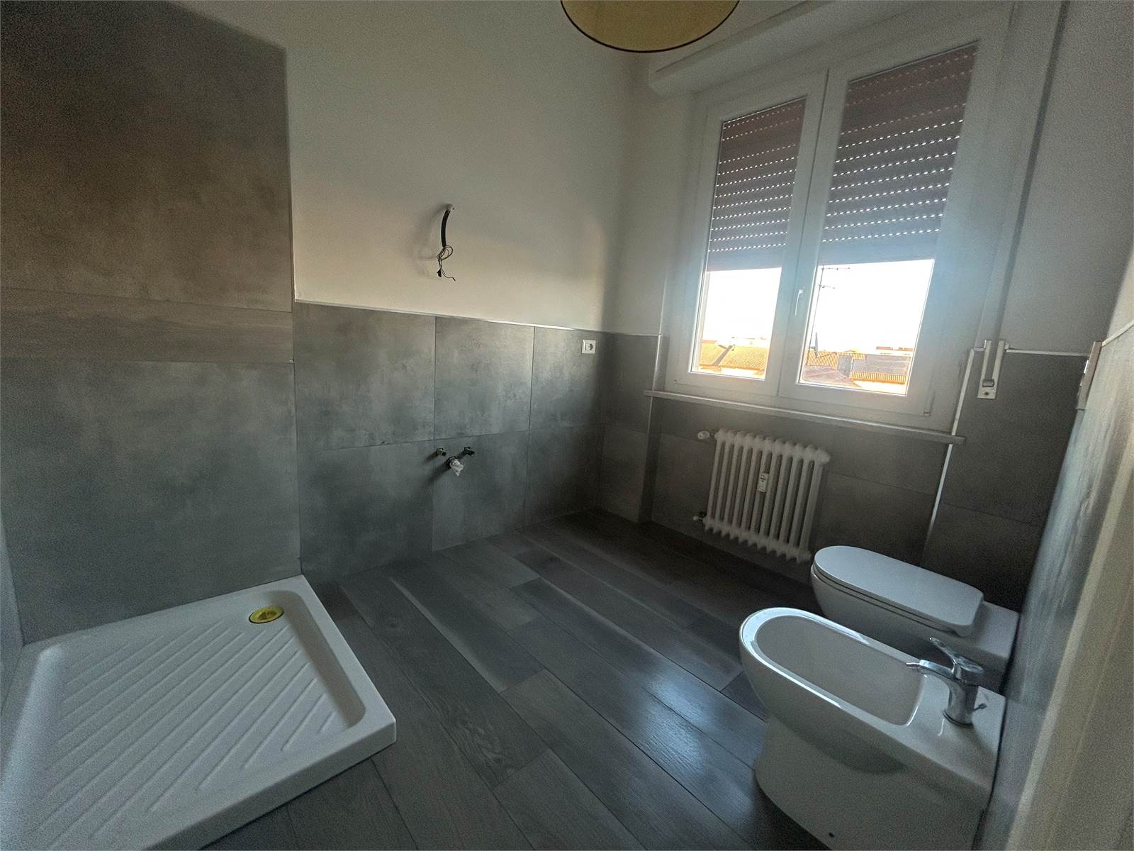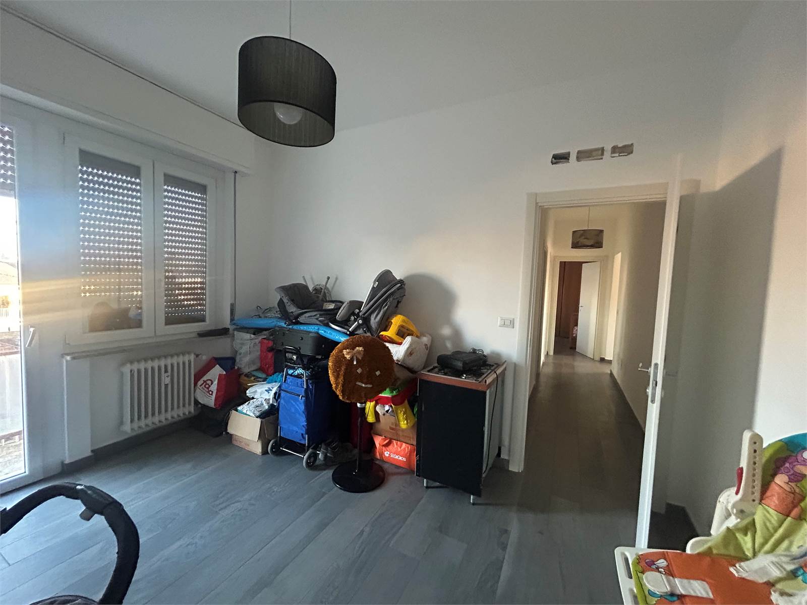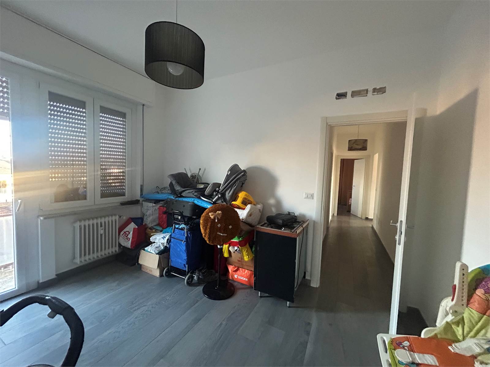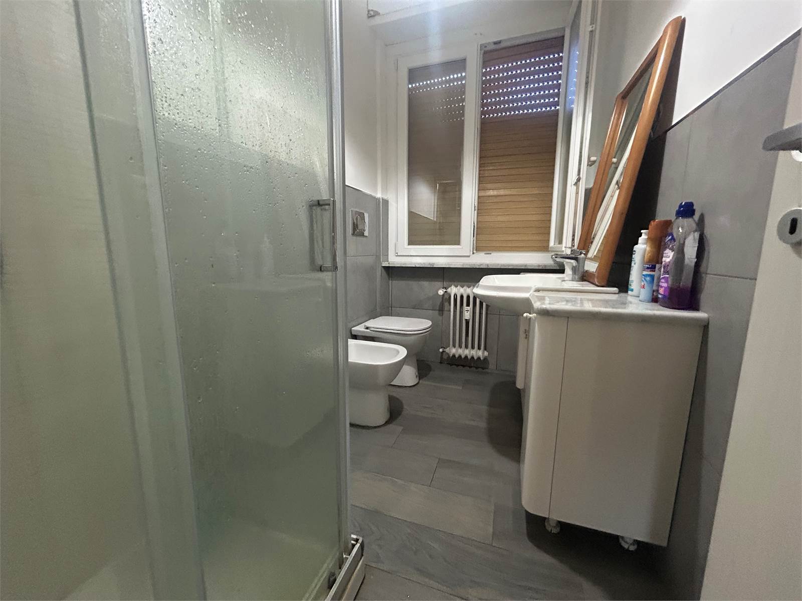 La zona notte comprende una spaziosa camera matrimoniale, una camera singola ben distribuita e due bagni finestrati, entrambi rinnovati con materiali di qualità.