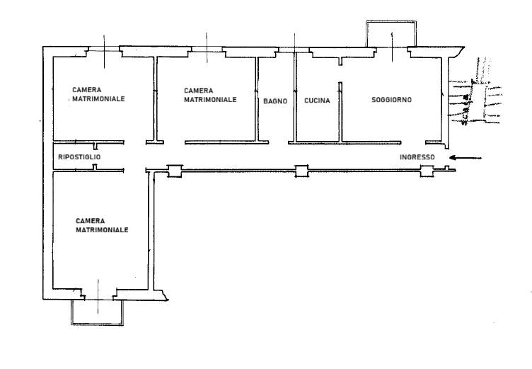 L'immobile è composto da un cucinotto, un tinello luminoso, tre camere generose, bagno e un ripostiglio. Completano la proprietà un box auto e un'ampia cantina.